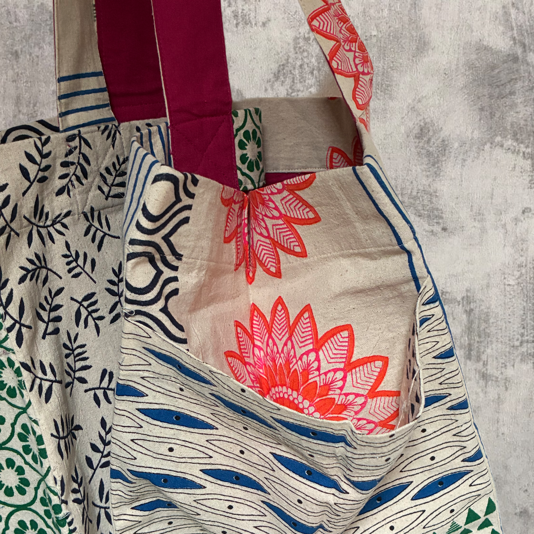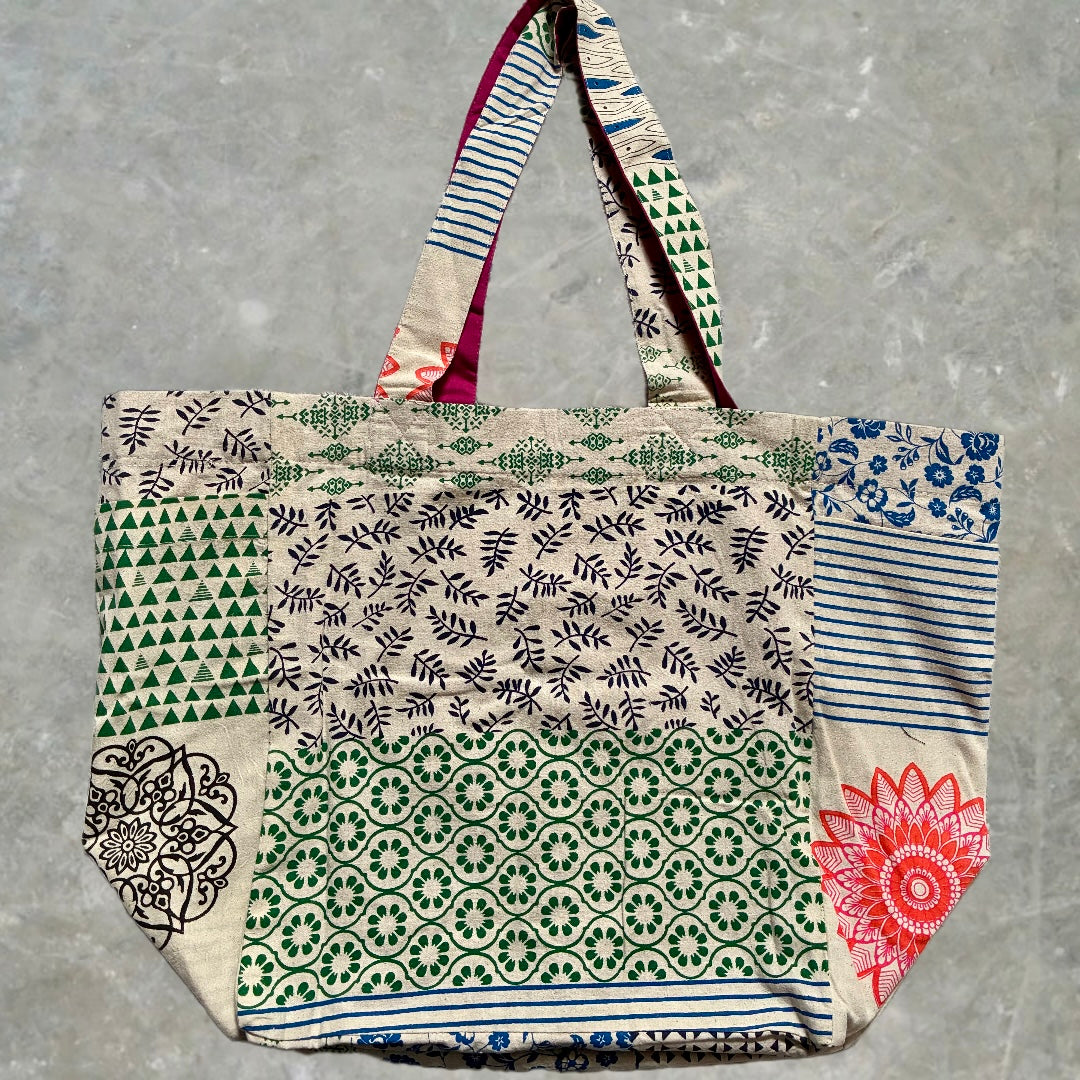 Borsa estiva in patchwork artigianale, ogni pezzo unico per la sua composizione di tessuti variabili. Ampia capacità con due pratici... Per saperne di più
