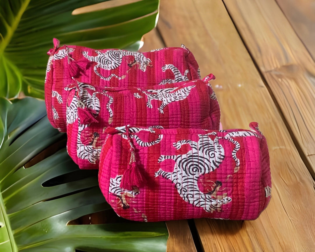 Perfette per viaggiare, queste pochette presentano una stampa esclusiva e una fodera impermeabile. Disponibili in tre diverse dimensioni, le tue cose saranno sempre organizzate e protette.