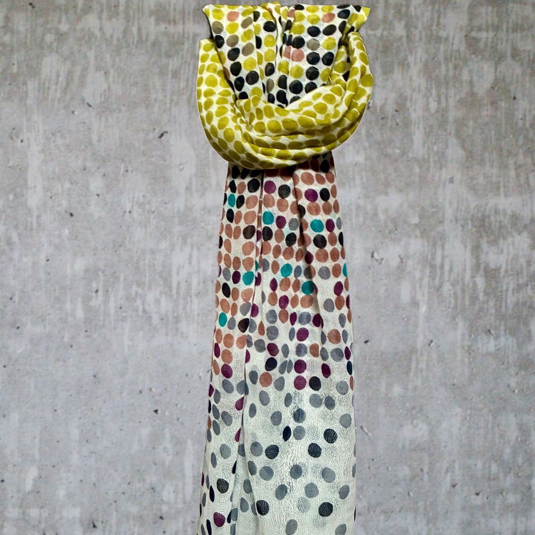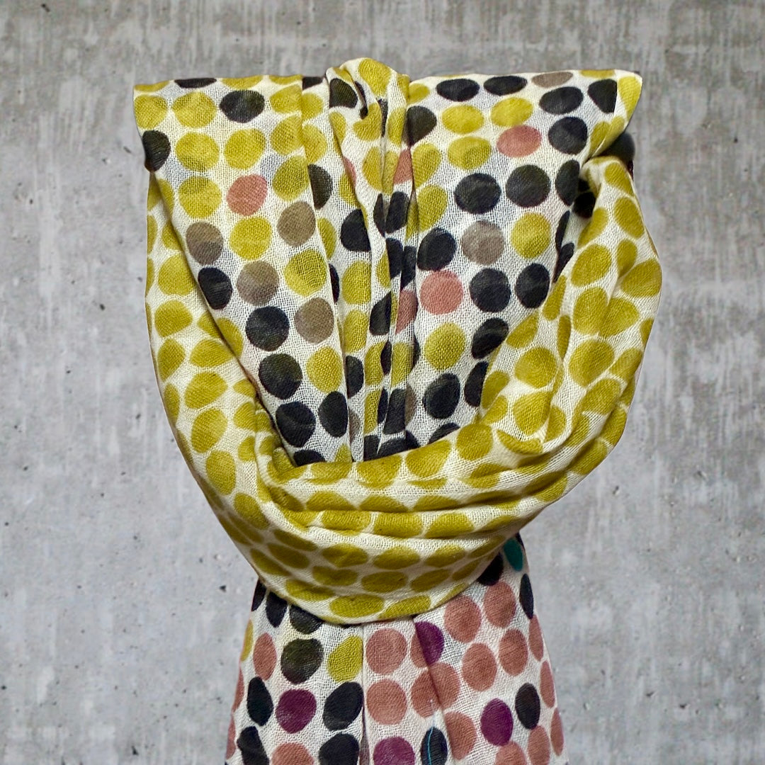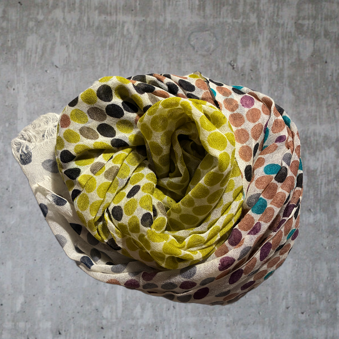 Avvolgiti nel morbido abbraccio della sciarpa Dottie, realizzata in 100% lana fina e leggera di alta qualità. Perfetta per aggiungere un tocco di allegria al tuo look o per un regalo che scalda il cuore... e il collo!