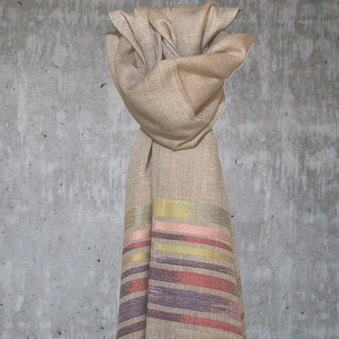 Avvolgiti in un abbraccio di morbidezza con questa sciarpa 100% lana, impreziosita da eleganti strisce metalizzate. Il suo tono beige chic con un tocco distinto rende ogni outfit unico e divertente. Perfetta per aggiungere un pizzico di brillantezza alle giornate più fredde ! Quantità limitata.