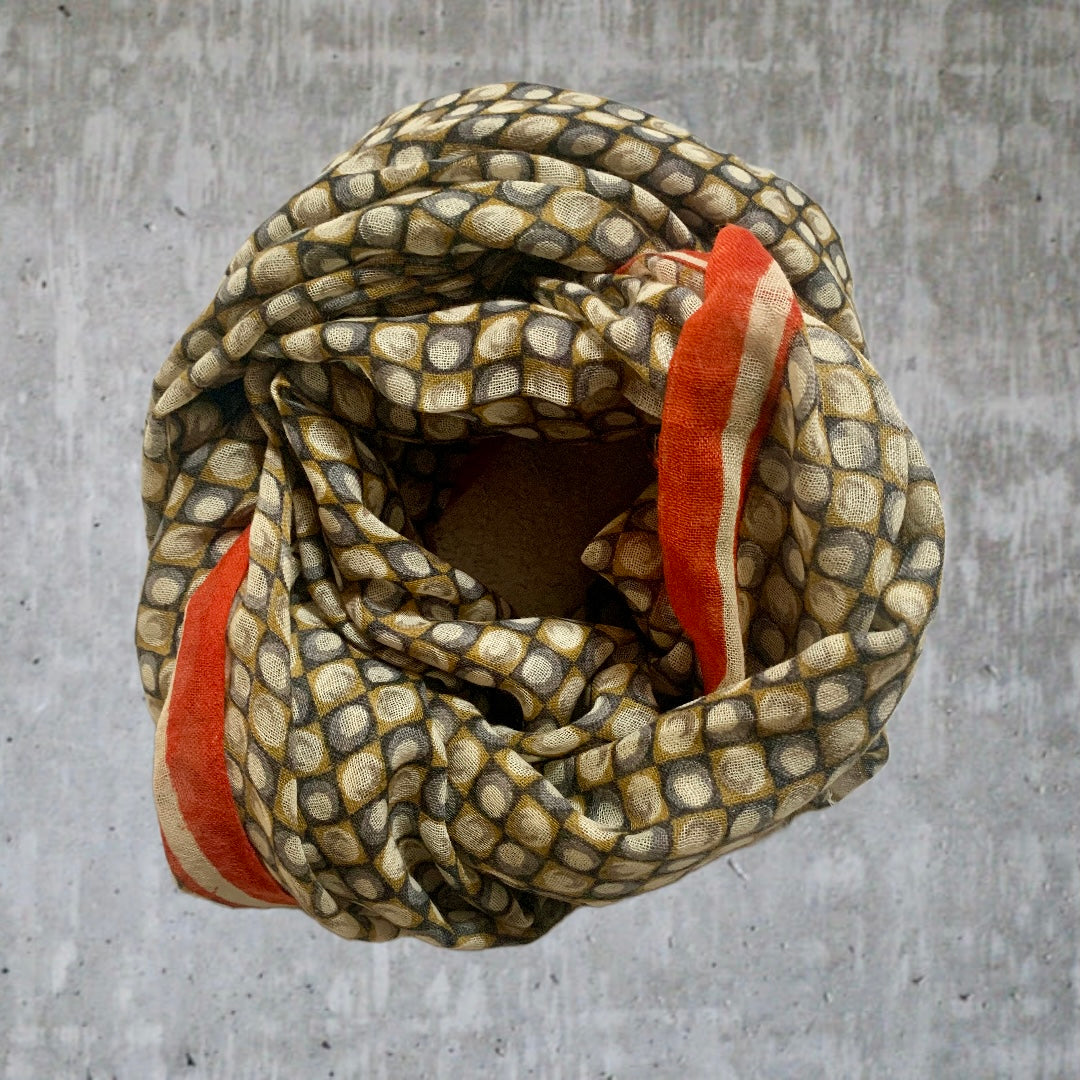 Avvolgiti nel morbido abbraccio della sciarpa Retro, realizzata in 100% lana fina e leggera di alta qualità. Perfetta per aggiungere un tocco di allegria al tuo look o per un regalo che scalda il cuore... e il collo!