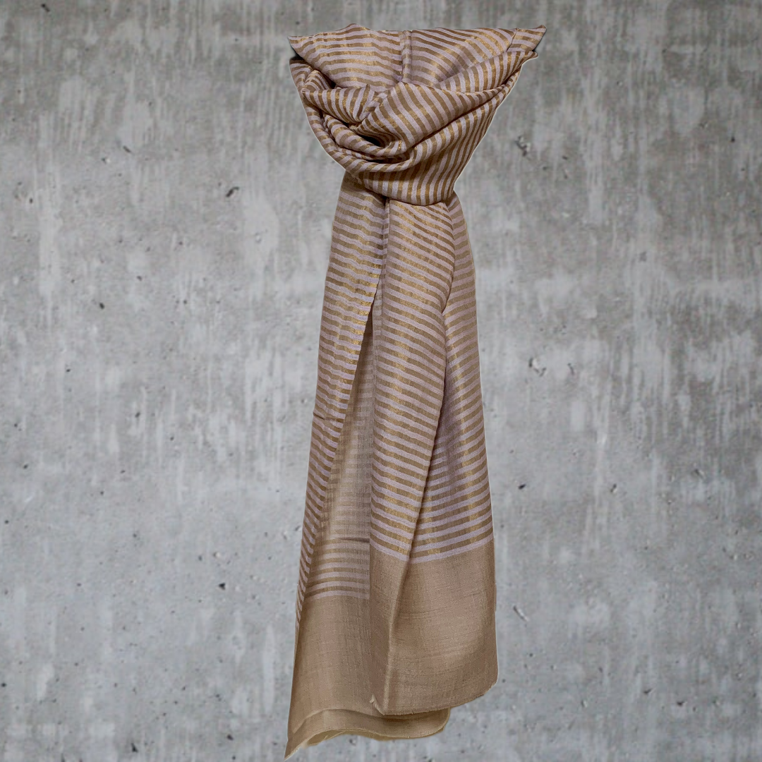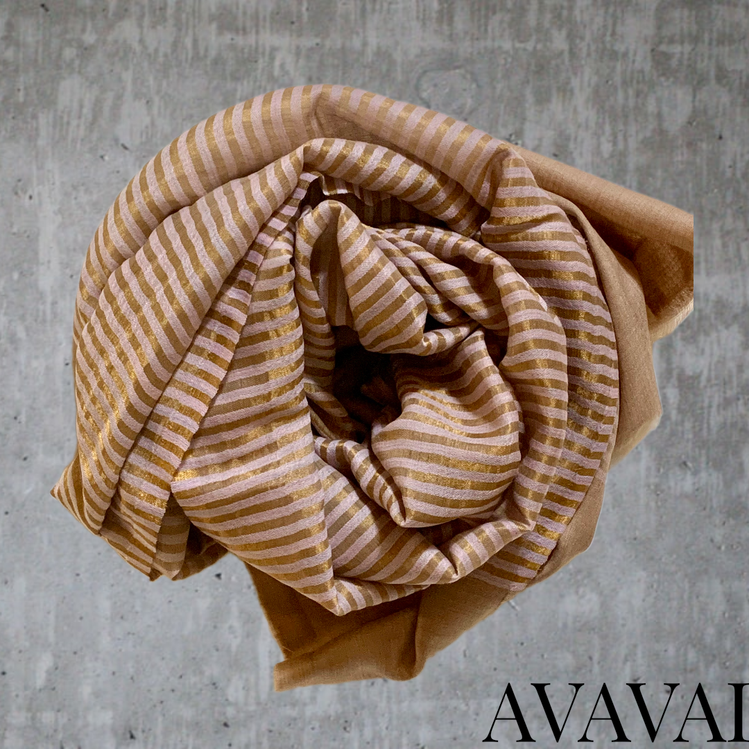 Avvolgiti in un tocco di lusso con la sciarpa a righe dorate in 100% lana di alta qualità,  Delicata e... Per saperne di più
