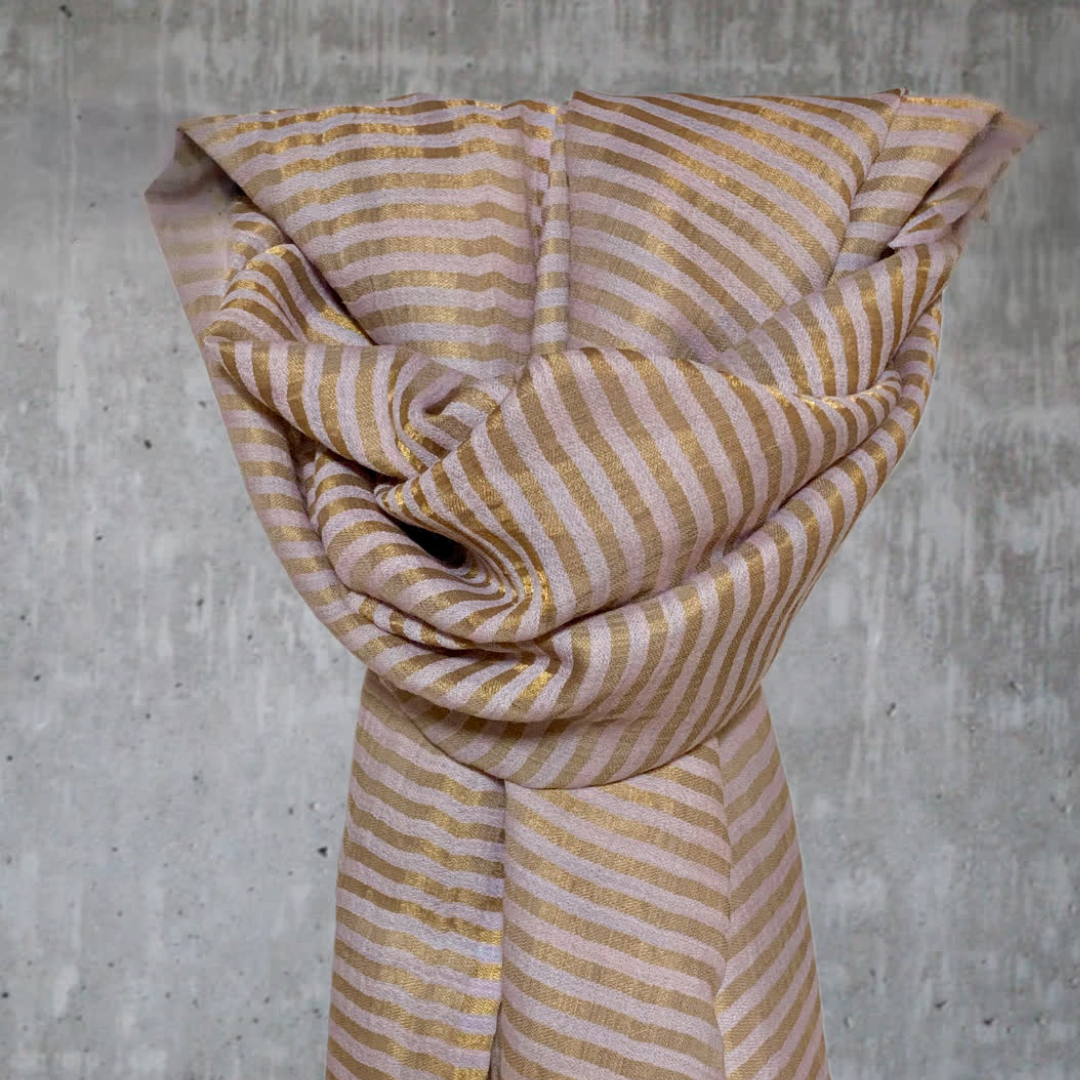 Avvolgiti in un tocco di lusso con la sciarpa a righe dorate in 100% lana di alta qualità,  Delicata e fine, è l'accessorio unisex perfetto per aggiungere un tocco di magia a ogni occasione speciale. Ideale per brillare durante il Capodanno o qualsiasi evento che meriti un po’ di glamour in più! Quantità Limitata