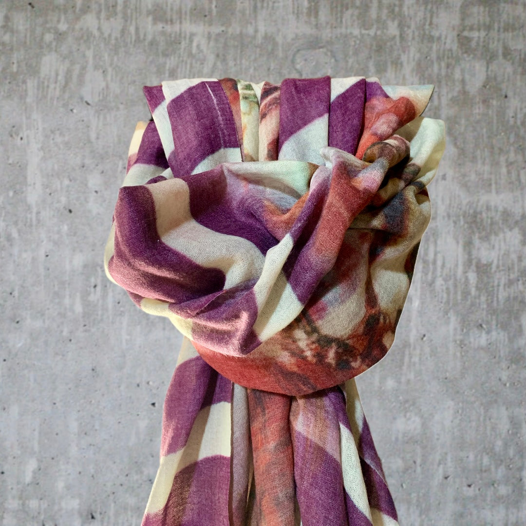 Avvolgiti nel morbido abbraccio della sciarpona Stripes & Flowers, realizzata in 100% lana fina e leggera di alta qualità. Perfetta... Per saperne di più