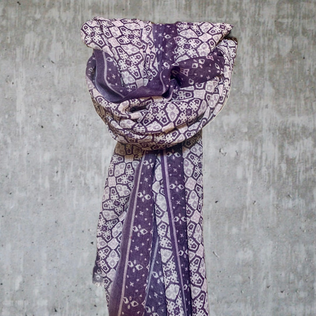 Avvolgiti nel morbido abbraccio della sciarpa Violacea, realizzata in 100% lana fina e leggera di alta qualità. Perfetta per aggiungere... Per saperne di più