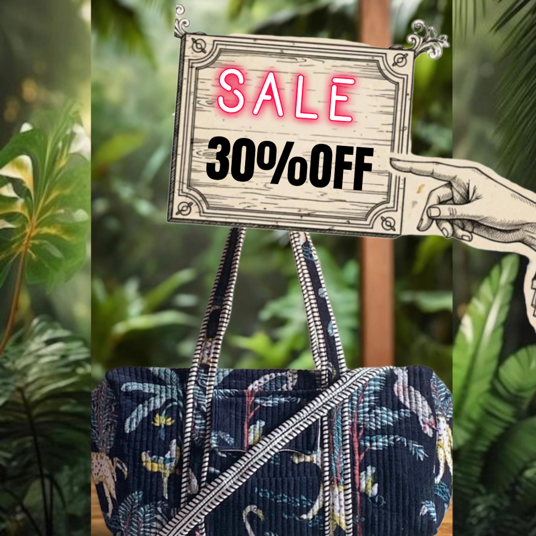 The Dark Blue Forest Duffle Bag is a practical option for travel. Crafted from 100% velvet, it features a beautiful tropical animal and flora print. Having a convenient cross-body strap, it is ideal for those who like to travel in style and comfort.